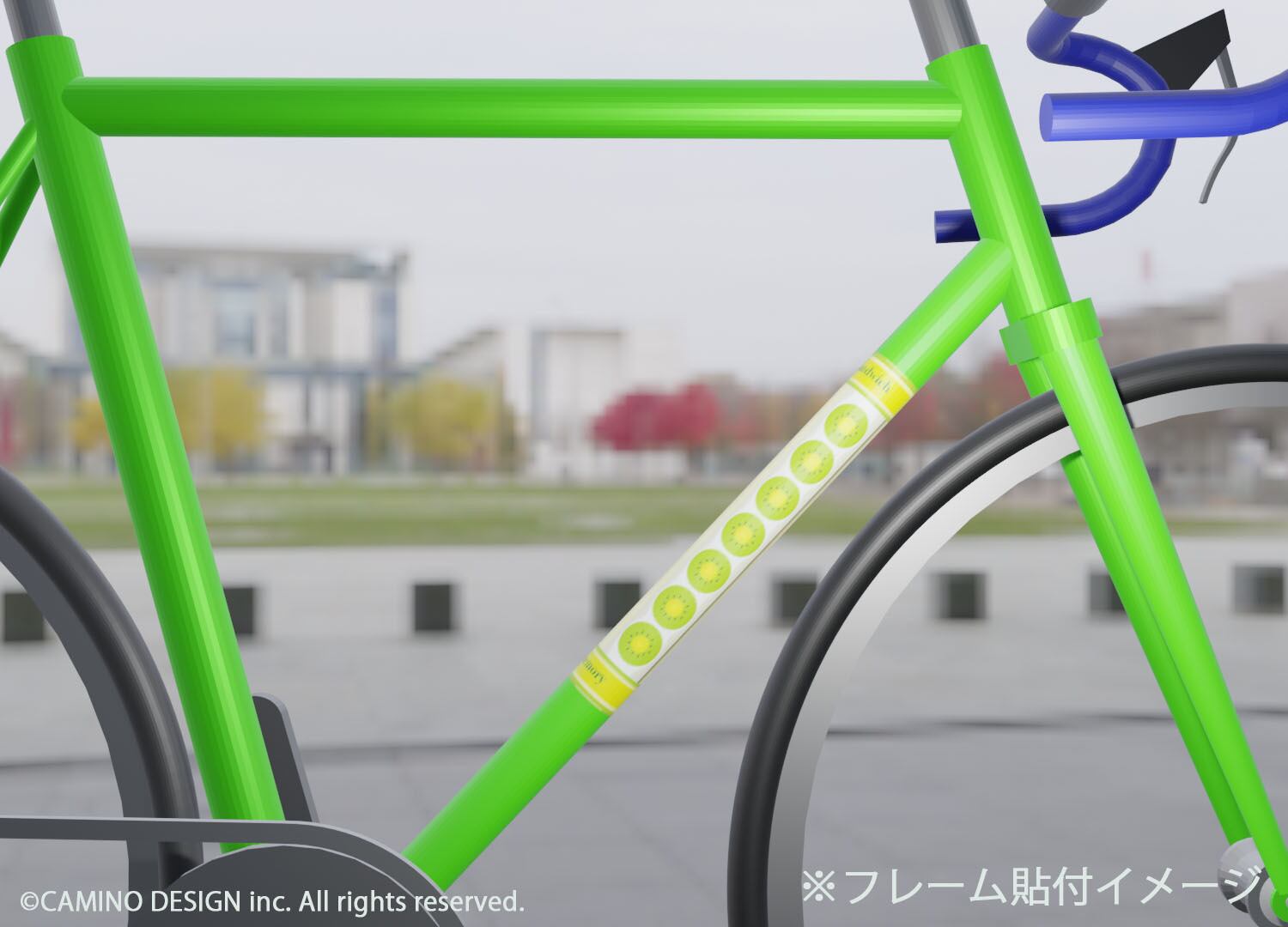 デフォルトでは「105×250mm」と「105×70mm」でデザインしてありますのでご自分の自転車のフレームサイズに合わせて拡縮してシール等にプリントし、カットしてから貼ってください。