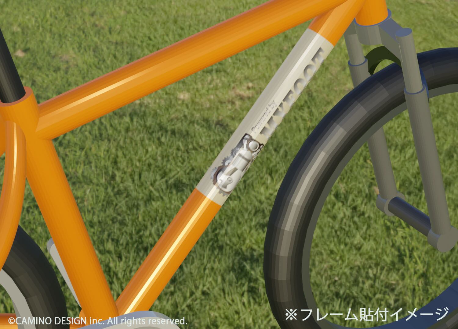 内燃機のイラストをモチーフにして、推進力は自分の脚力であることを表現しました。