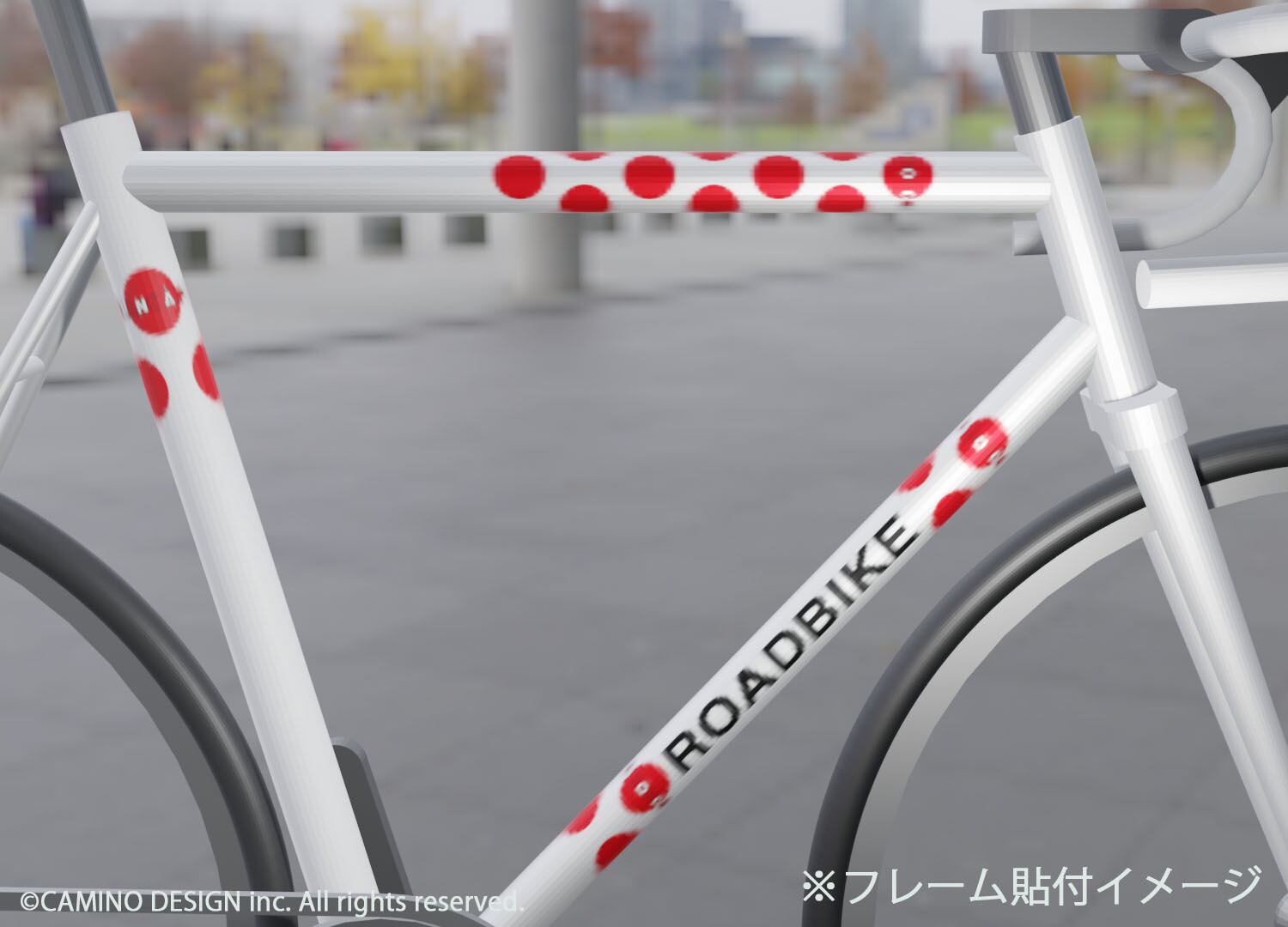 デフォルトでは「105×250mm」と「105×70mm」でデザインしてありますのでご自分の自転車のフレームサイズに合わせて拡縮してシール等にプリントし、カットしてから貼ってください。