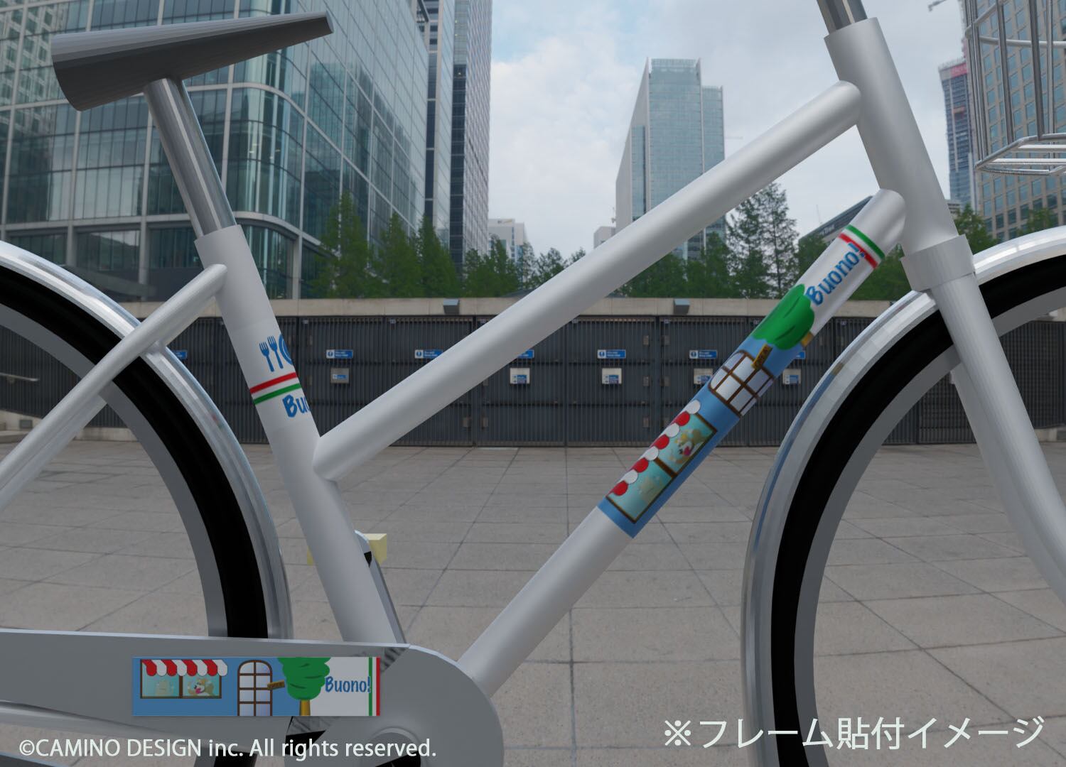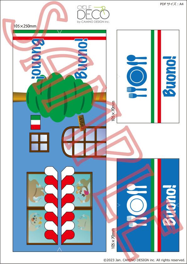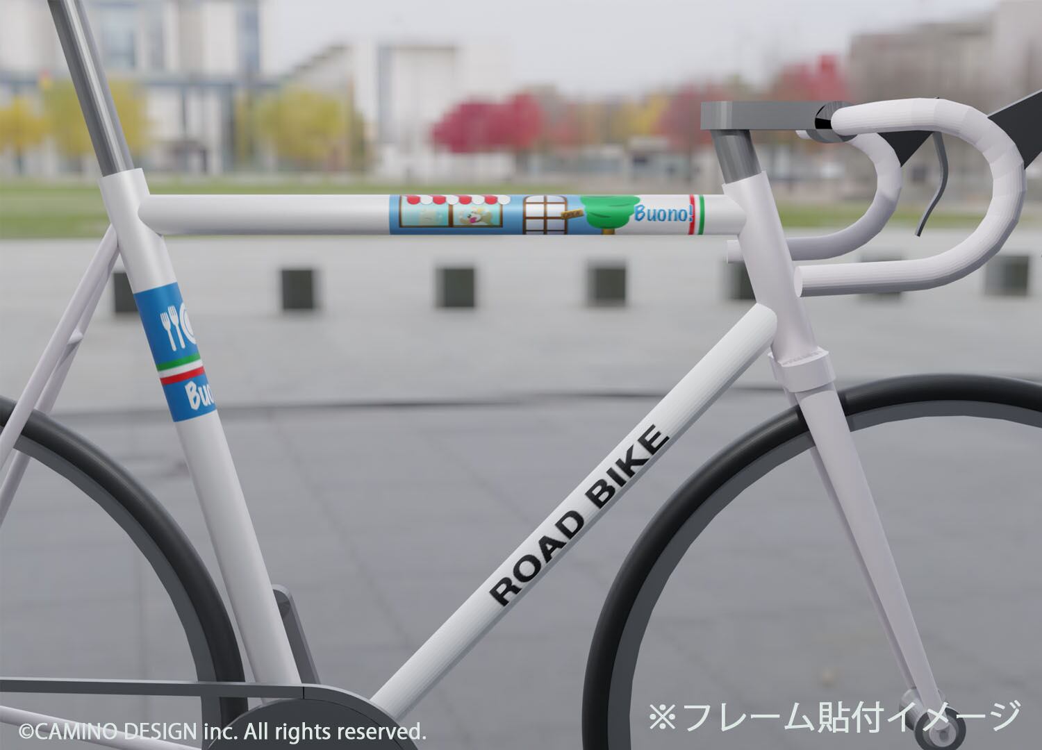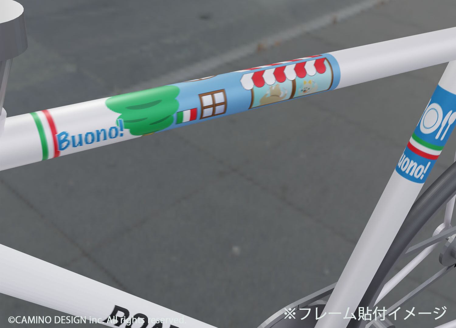 デフォルトでは「105×250mm」と「105×70mm」でデザインしてありますのでご自分の自転車のフレームサイズに合わせて拡縮してシール等にプリントし、カットしてから貼ってください。